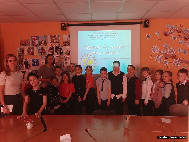 17 ноября в Поспелихинской Детской модельной библиотеке прошёл игровой интерактив «Дружба без границ», посвящённый международному Дню толерантности. В мероприятии приняли участие ребята из 3 «Б» класса ПСОШ №3. Библиотекарь рассказала детям о том, что такое толерантность, какими качествами должен обладать толерантный человек, а также о том, что нужно быть внимательным и доброжелательным к людям, которые тебя окружают.