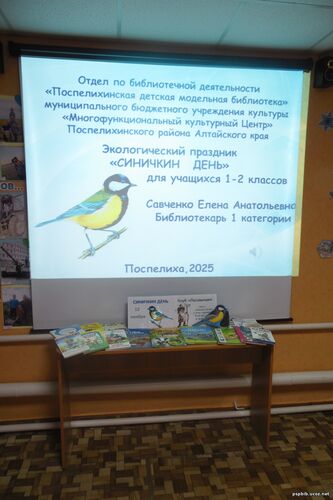 В Поспелихинской детской модельной библиотеке прошёл экологический праздник, посвящённый дню празднования Синичкиного дня. Ребята из клуба «Лесовичок» вспомнили птиц, живущих в нашем крае. Послушали стихотворения алтайских поэтов, в которых авторы призывают беречь птиц и подкармливать их зимой. Ребята с удовольствием отгадывали загадки про пернатых, играли в игры: «Воробьиная дискотека»