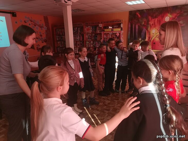 17 ноября в Поспелихинской Детской модельной библиотеке прошёл игровой интерактив «Дружба без границ», посвящённый международному Дню толерантности. В мероприятии приняли участие ребята из 3 «Б» класса ПСОШ №3. Библиотекарь рассказала детям о том, что такое толерантность, какими качествами должен обладать толерантный человек, а также о том, что нужно быть внимательным и доброжелательным к людям, которые тебя окружают. С помощью тематических игр ребята выявляли у себя хорошие качества, а также определяли качества, от которых им хотелось бы избавиться. Ученики вспоминали «волшебные слова», без которых невозможно уважительное общение, а также говорили друг другу комплименты и приятные слова. Мероприятие завершилось на дружеской ноте, ребята с помощью «техасских объятий» выразили своё дружелюбие друг другу. В интерактиве приняли участие 16 человек. | |