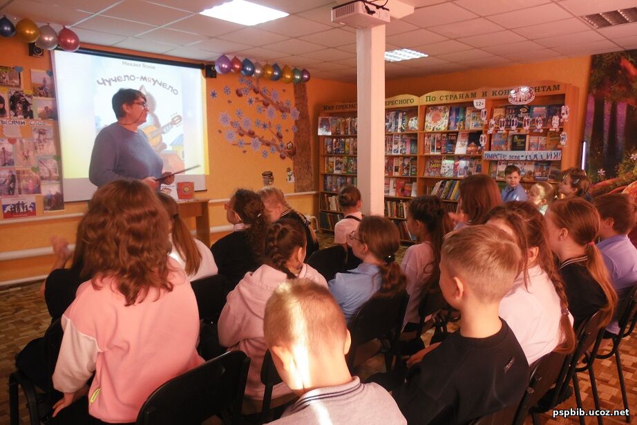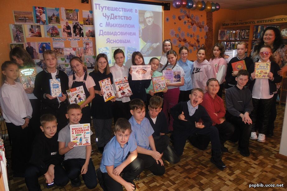 Сегодня ребята клуба «Вырастай-ка» МКОУ «ПСОШ №2, 4А класс, отправились в литературное путешествие в ЧуДетство с Михаилом Давидовичем Ясновым. В Чудетство откроешь окошки - Счастливень стучит по дорожке, Цветёт Веселютик у речки, И звонко поют Соловечки, А где-то по дальним дорогам Бредут Носомот с Бегерогом... Мы с ними в Чудетство скорее войдём - Спешит Торопинка под каждым окном, Зовёт нас глядеть-заглядеться: Что там за окошком? Чу!.. Детство! Ребята познакомились с биографией Михаила Давидовича, в этом году 8 января исполнилось 80 лет со дня его рождения. Дети посмотрели видео «Михаил Яснов читает свои стихи для детей», послушали песню «Мы приехали», посмотрели мультфильм «Чучело-мяучело». На мероприятии прозвучали стихотворения: «Кисуня и крысуня», «А вот и нет!», «Колючая сказка», «Вместо рекламы», «Вот был бы большим…», «Солдатская сказка», «Собиратель сосулек», «На прашлагодние ашибки», «Хорошее настроение». Ребятам были рады знакомству с новым автором замечательных стихотворений. Мероприятие посетили 24 человека. | |