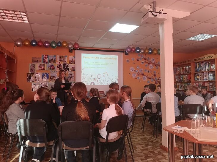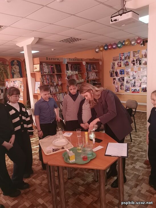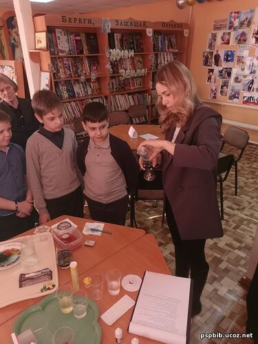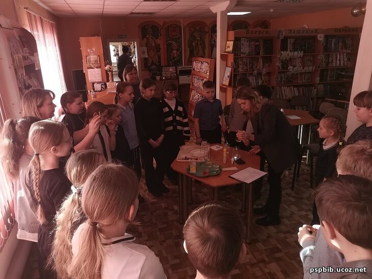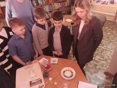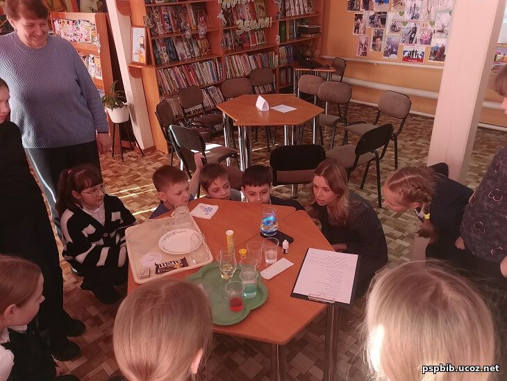 А знаете ли вы, что наука может быть не только сложной, но и очень интересной и занимательной? В честь праздника Дня Российской науки, который празднуется в России 8 февраля, ребята из 4»Б» класса ПСОШ № 1 пришли в Поспелихинскую детскую модельную библиотеку на научную викторину с опытами «Знаете ли вы?» Ребята разделились на две команды «Научата» и «Физики» и отправились в увлекательное путешествие по миру науки. На первой остановке «Небо и земля» команды отвечали на вопросы об окружающем нас мире, и о космосе. На следующей остановке «Математической», участникам викторины предстояло разгадать зашифрованную фразу. На остановке «Чёрный ящик», каждой из команд нужно было отгадать предмет, спрятанный от их глаз в таинственной чёрной коробке. Ребята с удовольствием отгадывали загадки с научными изобретениями и узнали для себя много нового на остановке «Великие изобретения». Финальной остановкой стала «Физика и Химия». Вместе с библиотекарем Мариной Козыревой дети окунулись в чудесный мир научных опытов. Ребята с восторгом делали «Лава-лампу» с помощью масла, воды с красителем и аскорбиновой кислоты, наблюдали за явлением конвекции на примере спиральной бумаги. Очень увлекательным оказался опыт «Разные плотности жидкостей». Ребята были удивлены тому, что в одном стакане можно создать такой «слоёный пирог» из различных по плотности жидкостей: масла, спирта, воды и жидкого мыла. А эксперимент «Радуга в тарелке» с разноцветными конфетами яркий и красочный, очень удивил и порадовал ребят. Также участники команд узнали, что такое вакуум с помощью опыта «Свеча в стакане». Наука может быть интересной и весёлой, особенно, если за дело берутся дети! Мероприятие посетило 25 человек. | |