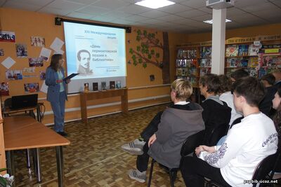 «Поспелихинская детская модельная библиотека» присоединилась к XIII Международной акции «День лермонтовской поэзии в библиотеке», организатором которой является ГКУК «Пензенская областная библиотека для детей и юношества». Для учащихся 9 «А» класса школы №3 прошел поэтический час «Поэзии чудесный гений», посвящённый стихотворениям Михаила Юрьевича Лермонтова. «Открыл» день лермонтовской поэзии президент РФ Владимир Владимирович Путин: детям был показан фрагмент программы «Время», в котором президент читает наизусть отрывок из стихотворения «Родина». На мероприятии прозвучали и другие стихотворения М.Ю.Лермонтова: «Тучи», «Три пальмы», «Небо и звёзды», «Листок», Бородино», «Когда волнуется желтеющая нива…» и др. Ребята также узнали интересные факты из жизни и творчества Михаила Юрьевича, например, о том, что Лермонтов был не только замечательным поэтом и прозаиком, но и отлично писал картины. Мероприятие посетили 26 человек.