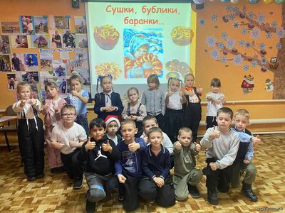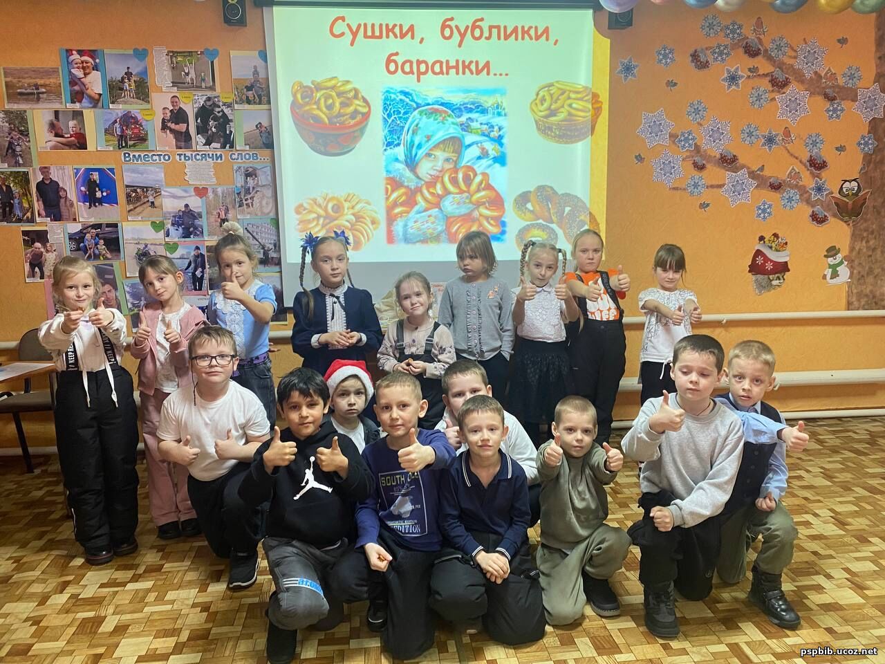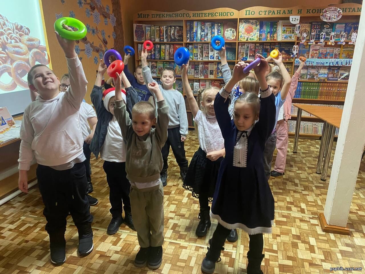 Ребята МБОУ «ПСОШ №1» 1 класс посетили библиотеку. Для них прошла познавательно-развлекательная программа «Сушки, бублики, баранки…» Кольцо не простое, кольцо золотое, Блестящее, хрустящее, всем на загляденье. Ну, и объеденье! Баранки, бублики, сушки – старинные русские хлебные изделия, без которых раньше не обходилось ни одно чаепитие и в будни, и в праздники. Да и сегодня жители многих городов и деревень охотно покупают бараночные изделия. Выбор большой: баранки сахарные, простые, горчичные, молочные, сдобные, ванильные, чистые, с маком и многие другие. Непременной операцией производства баранок является обварка тестовых колец крутым кипятком. Ребята познакомились с производством бараночных изделий. Поиграли в игры «Художники», «Писаки», «У кого бублик», «Не урони», «Собери». Весело прошел конкурс «Угадай-ка», в пакетик положили 12 сушек. Его положили в тканевый мешочек. Дети должны были угадать, сколько сушек в пакетик. В завершении мероприятия всех ребят угостили сушками. Мероприятие посетило 19 человек. | |